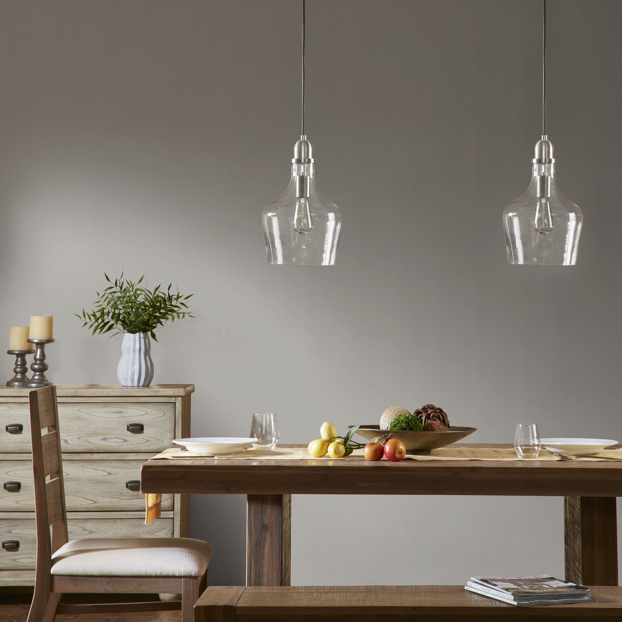 Illuminate your home decor with the simple, industrial style of the Hampton Hill Auburn Bell Shaped Glass Pendant. Featuring a bell-shaped glass shade this ceiling pendant could be mounted on vaulted or angled ceilings. A metal finish completes the look and complements a variety of kitchens and entryways. Comes with a 2 year limited warranty. Professional installation and assembly is required. 1 Type-A light bulb is needed and NOT included. Spot clean only.