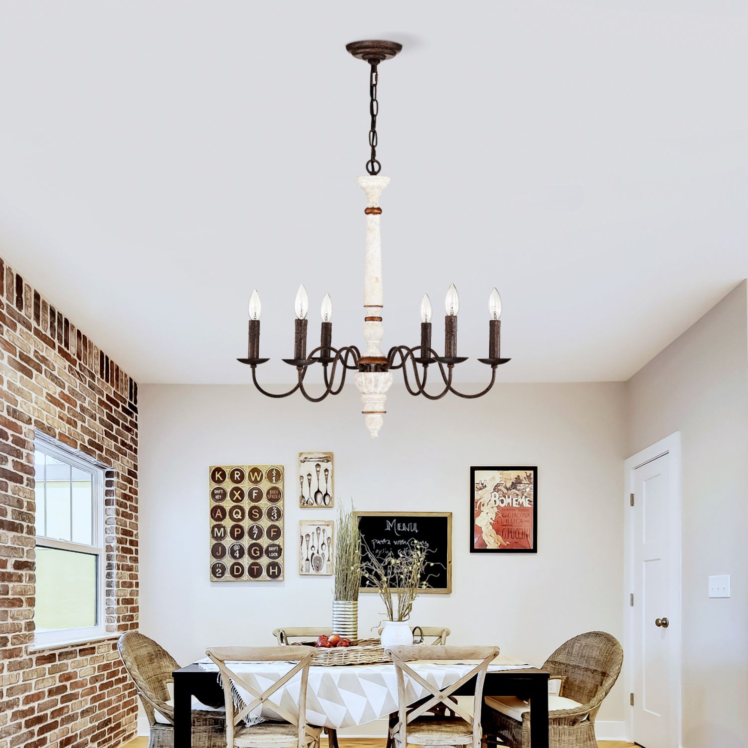 Eye-Catching Farmhouse Chandelier: This 6-light Retro white and Rust Color chandelier features a classic candle-style design, adding rustic charm to your space. A perfect statement piece for dining rooms, kitchens, and living room, elevating your home's ambiance with elegance