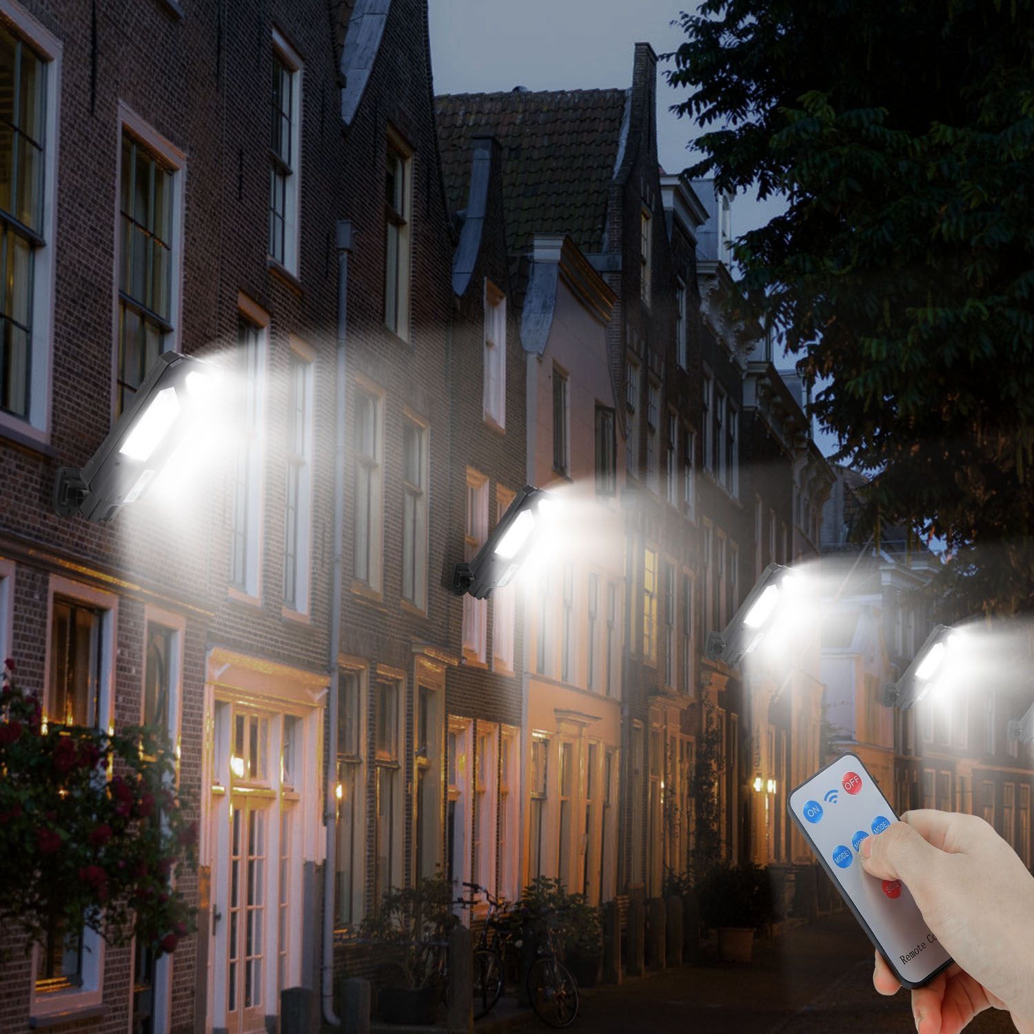 5 Remote Control Modes: ON Mode: High Brightness When Motion Detects(20S); Light Turns Off After People Leaves; MODE 1: High Brightness When Motion Detects(20S); Dim Light When People Leaves; MODE 2: Constant Dim Light; MODE 3: Quick Flash; SOS: Slow Strobe